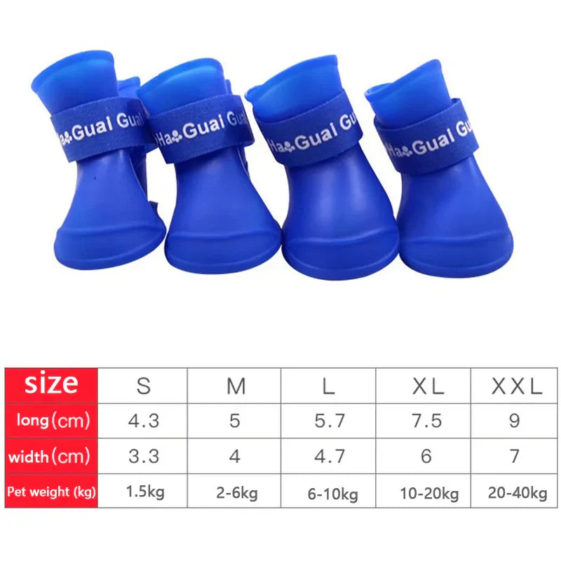 4Pcs Waterproof Anti-Slip Pet Rain Shoes – Rubber Boots for All Sizes