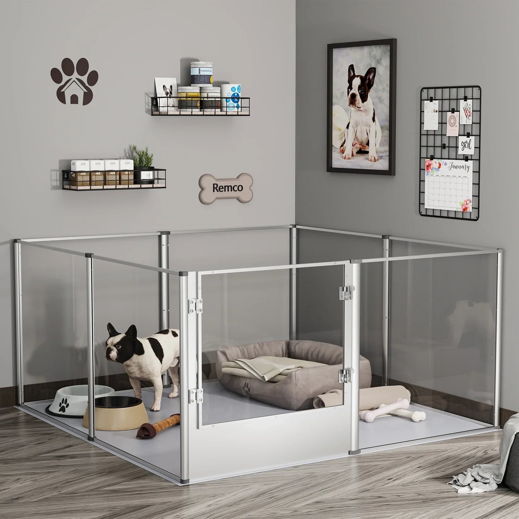 Acrylic Dog Playpen – Clear Whelping Pen with Waterproof Pad for Puppies & Cats