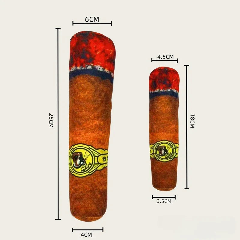 Add a humorous twist to playtime with this simulation cigar squeaky toy — soft, interactive, and perfect for small dogs who love to chew and squeak.